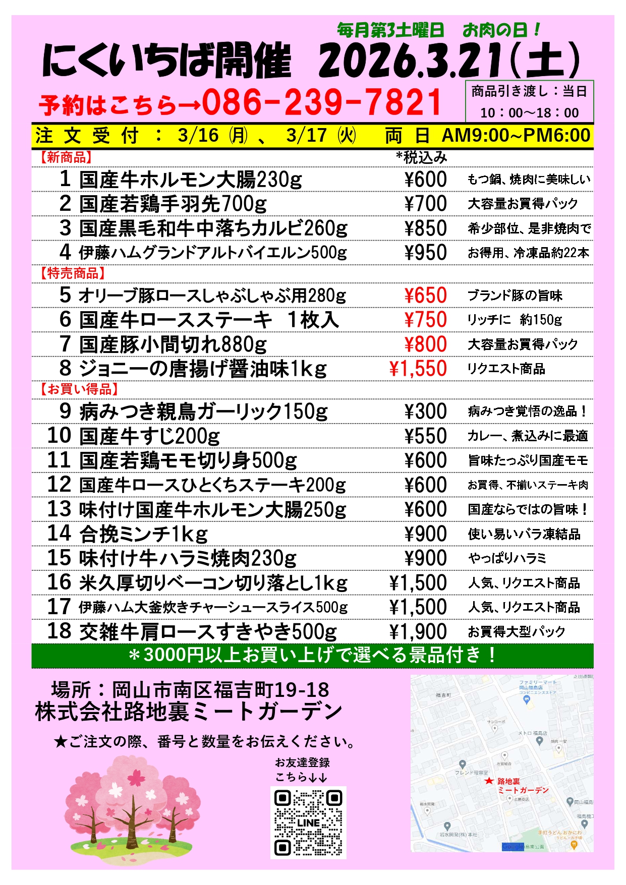 注文受付:3/16㈪、3/17㈫ 両日AM9:00~PM6:0